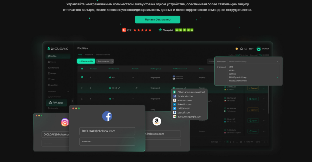 В современном digital-мире мультиаккаунтинг и командная работа — стандарт для маркетологов, арбитражников и e-commerce-специалистов. Управление десятками профилей помогает тестировать идеи, мониторить конкурентов и масштабировать кампании. Однако стандартные браузеры легко выдают пользователей: платформы отслеживают fingerprints (цифровые отпечатки устройств), связывают аккаунты и блокируют их. Это приводит к потерям времени и ресурсов. Антидетект-решения, такие как антидетект-браузер DICloak, решают проблему за счет изоляции профилей и минимизации рисков обнаружения.
