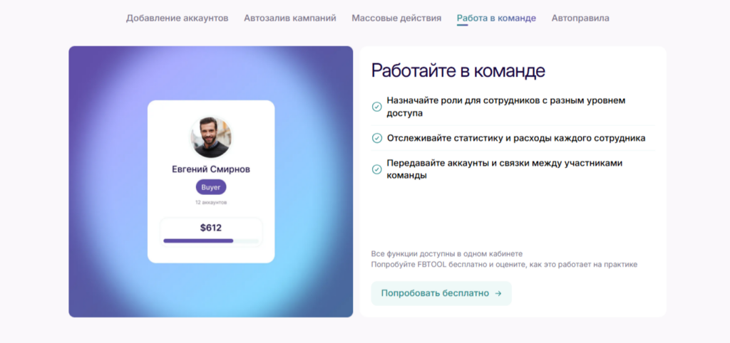 FBTOOL — это инструмент для тех, кто регулярно работает с рекламой в Meta* и хочет упростить операционные процессы. Он подходит специалистам и командам, которым важно держать контроль над кампаниями, сокращать ручной труд и выстраивать более понятную рабочую схему.