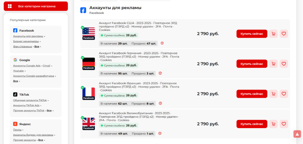 Маркетплейс NPPRTEAM.SHOP собрал наиболее востребованные категории аккаунтов, которые помогают специалистам эффективно работать с популярными рекламными системами. Ассортимент ориентирован на реальные нужды рынка: от бюджетных вариантов для тестов до премиум-профилей для крупных бюджетов.
