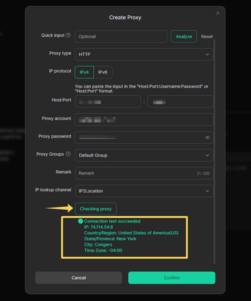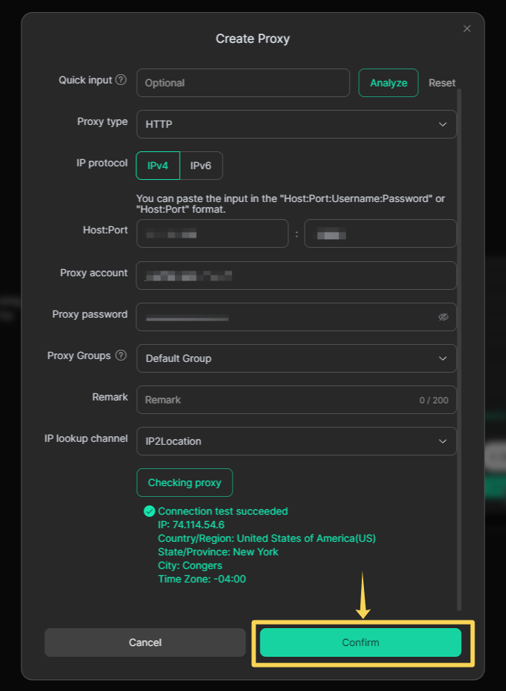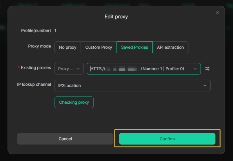 Нажмите Confirm, чтобы сохранить прокси.