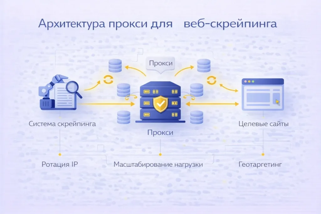 Прокси-инфраструктура помогает распределять запросы между разными IP-адресами, делая сбор данных более стабильным и масштабируемым.